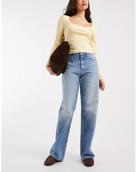 Asos Design Tall Wide Leg Dad Jean - Blue