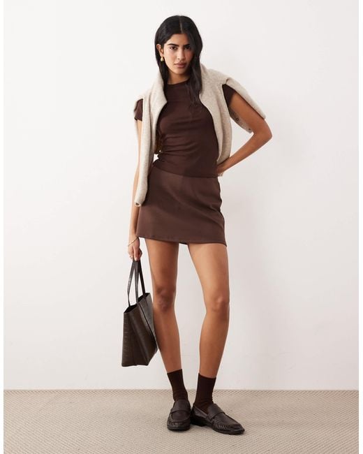 Asos Design Curve Pleat Brushed Pleated Micro Mini Skort - Brown