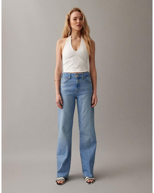 Jeans by ASOS DESIGN Straight fit High rise Belt loops Five pockets Branded patch on back.