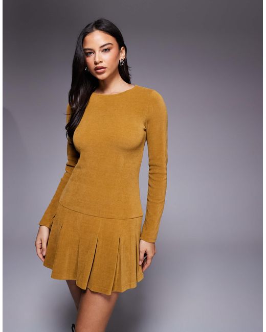 - Corduroy Dropped Waist Mini Dress With Pleated Skirt