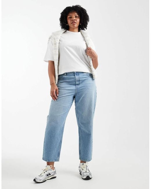 Asos Design Curve High Rise Relaxed Mom Jeans - Blue