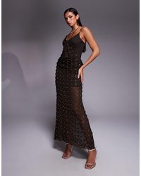 ASOS Women's Natural Embellished Disc Fringe Midi Skirt With Hem Detail