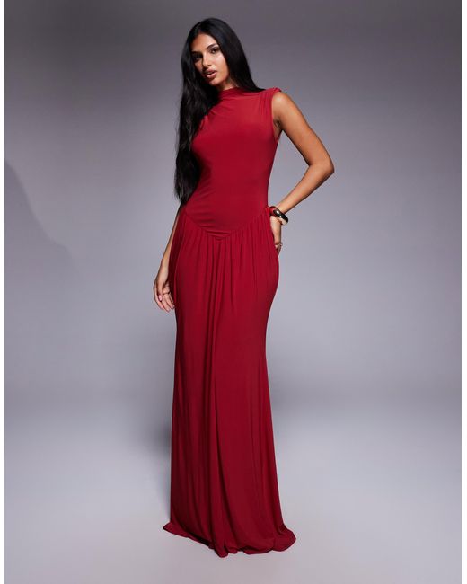 - High Neck Sleeveless Maxi Dress With Ruched Detailing