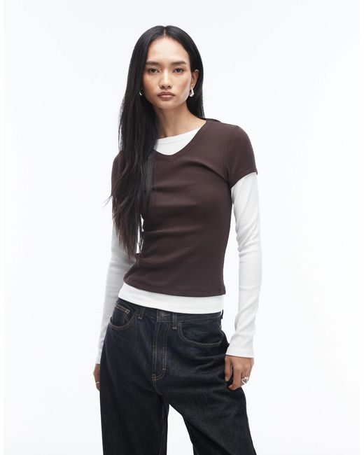 Top by ASOS DESIGN High neck Short sleeves Double-layer design Contrast overlay Regular fit.