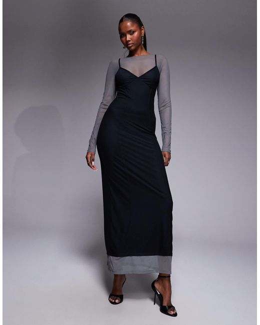 - Mesh Double Layer Corset Maxi Dress With Seaming Detail