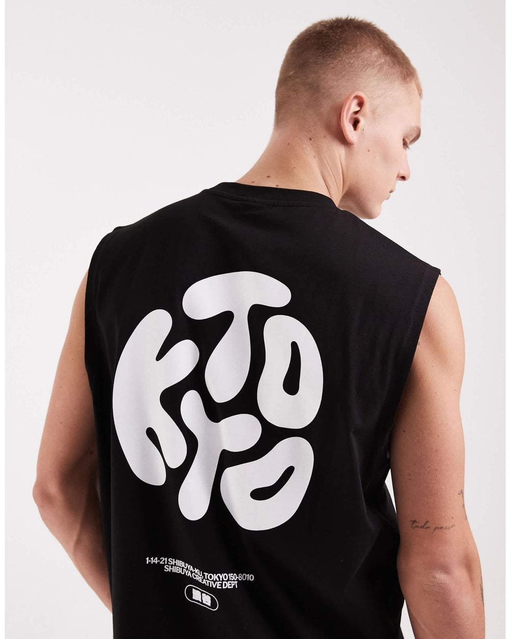 Men's Black Oversized Tank With Kyoto Bubble Text Print