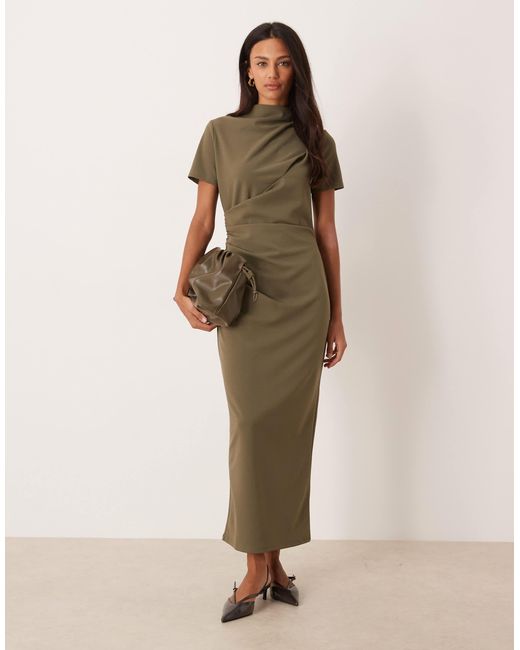 - Pleated Drape High Neck Midaxi Dress