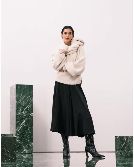 Asos Design Petite Satin Bias Midi Skirt - Black