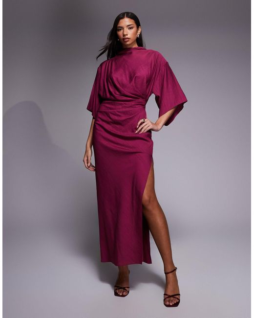 - Textured Drape Skirt Maxi Dress With Split Detail
