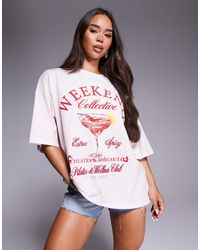 ASOS Women's Purple Weekend Collective Oversized T-Shirt With Cocktails And Social Club Graphic