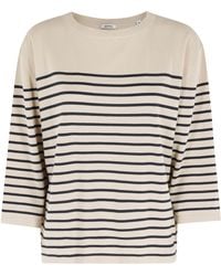 Go to ItalistCategory: Sweater Article: Blue striped sweater Brand: Aspesi Color: Blue and beige Neckline: Round neck Details: Ribbed trim SIZE AND FIT Fit: Regular Sleeve: Long
