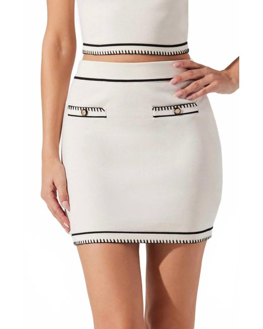 The perfect mini skirt does exist.The Sessy Mini Skirt by ASTR is a chic, minimalist addition to your closet, perfect for a dinner party or Thanksgiving gathering. This solid white mini skirt is crafted from a blend of 70% Lyocell and 30% Polyester, ensuring a comfortable and stylish fit. Designed with a 17" length, 28" waist, and 33 1/2" hips, it features an elasticized waistband and faux pockets adorned with embellished buttons for added flair. Closure - Pull on. Care Instructions - Dry clea Color: white