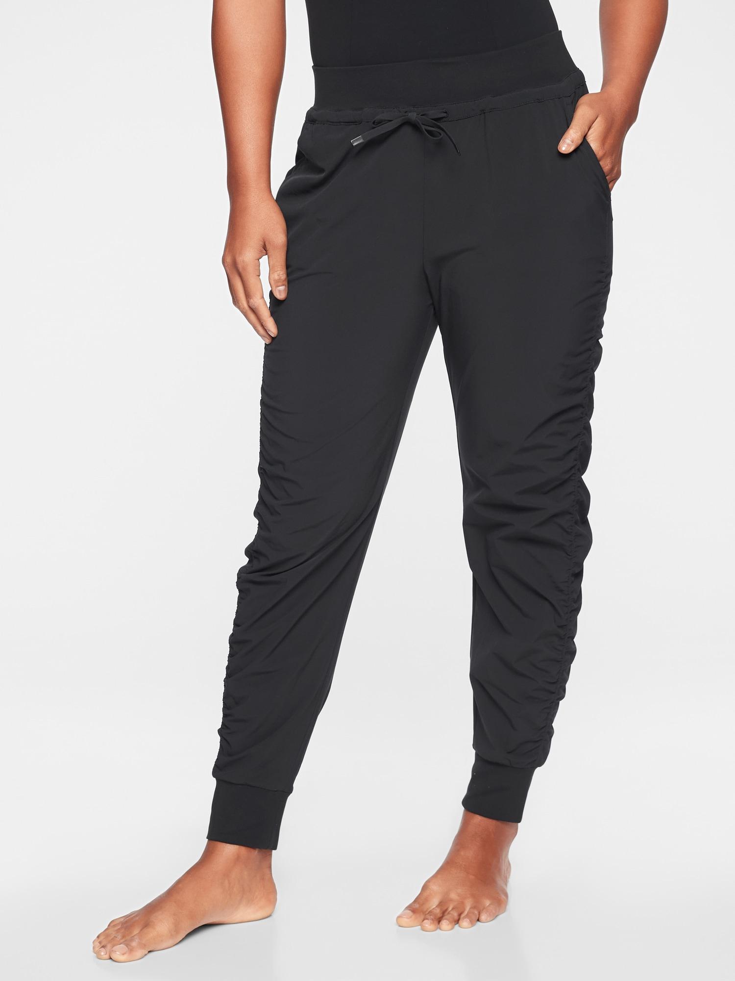Barre, pilates, dance and other low-impact studio workouts Recycled Featherweight StretchTM fabric feels silky sleek and light as air Waist & bottom hems are made to roll up to track body movement. Color: black