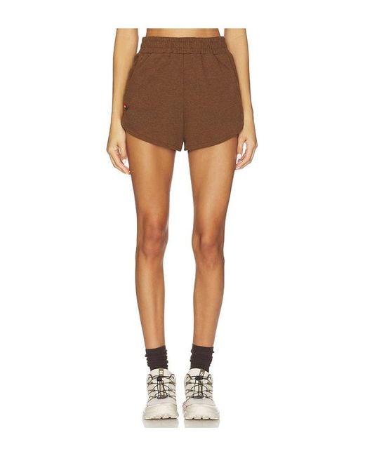Aviator Nation Essential Club Short in Brown. - size L (also in M, S, XL, XS) Aviator Nation Essential Club Short in Brown. - size L (also in M, S, XL, XS) 50% Polyester 38% Cotton 12% Rayon. Made in the US. Machine wash cold. Pull-on styling. Soft knit. Shorts measure approx 12 in length. ANAT-WF14. WSCES. Who doesn't have an obsession with vintage clothing? Paige Mycoskie, creator of Aviator Nation sure does. That's why she began studying the art of authentic vintage clothing and starting creating her own line of tee's, sweatshirts and hats to give the world that well worn feeling of so long ago. Color: brown