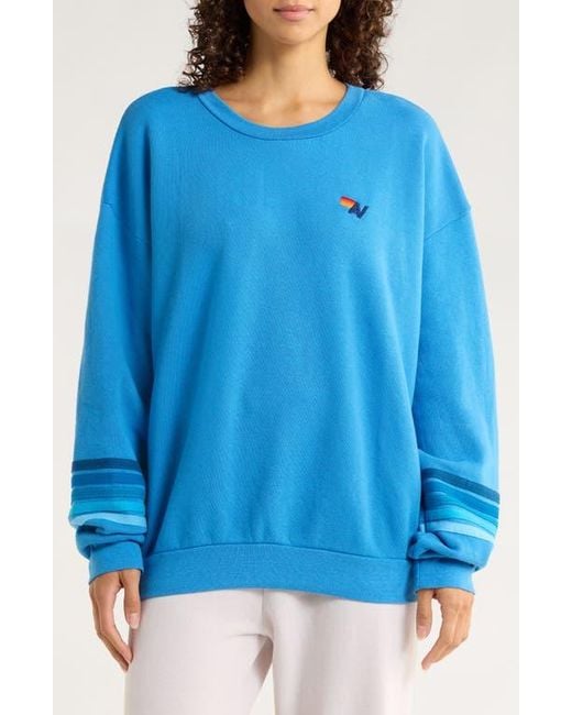 Dropped shoulders further the comfortably slouchy fit of this sweatshirt cut from a supersoft triblend fleece and finished with sporty stripes on the sleeves. Color: blue