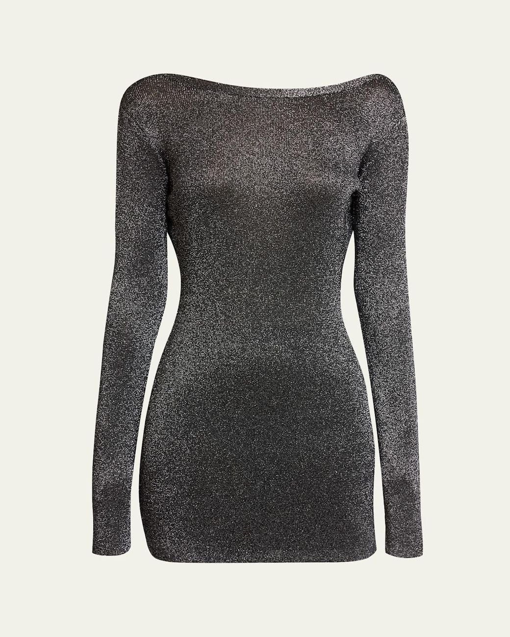 - Metallic Knit Long-Sleeve Backless Mini Dress