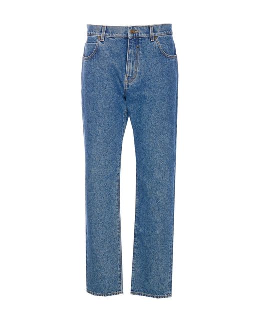 Balmain denim pants, button and zip closure, 5 pockets, wide leg, patch logo on the backComposition: 100% Cotton