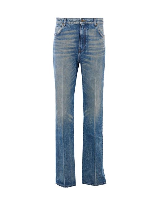 Balmain denim jeans, zip and button closure, 5 pockets, straight fit, embroidered logo on the back, patch logo on the backComposition: 100% Cotton