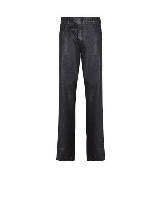 Regular-fit jeans in shiny coated denimWaistband with belt loops and a triple belt loop at the backFlyZip and press-stud fastening under a placket5 classic pocketsWoven vintage Balmain labelEngraved rivetsMatching hardwareModel measures 188cm and wears a size 30Main material: 100% cottonMade in ItalyItem: EH0MI083DF72 Color: blue