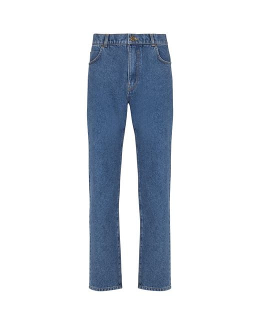 With a steady supply of logo-patterned T-shirts, Balmain crafts the ultimate pairing for its casual tops – the straight jeans. This pair will easily form the foundation of your edits for years to come, and its mid-wash and crisp composition will only get better with wear. Color: blue