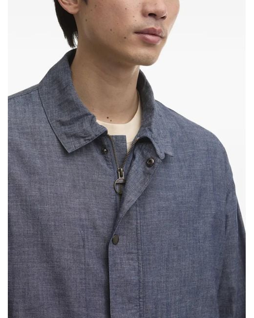 Men's Blue Modified Westoe Flap-Pocket Cotton Jacket