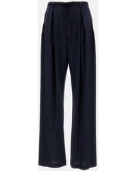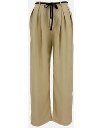 Go to ItalistStraight-leg pants in gray woven fabric with a fine mlange texture. Features a fully elasticated waistband, side slip pockets visible at the front, two flap pockets at the back, and a centre-front crease