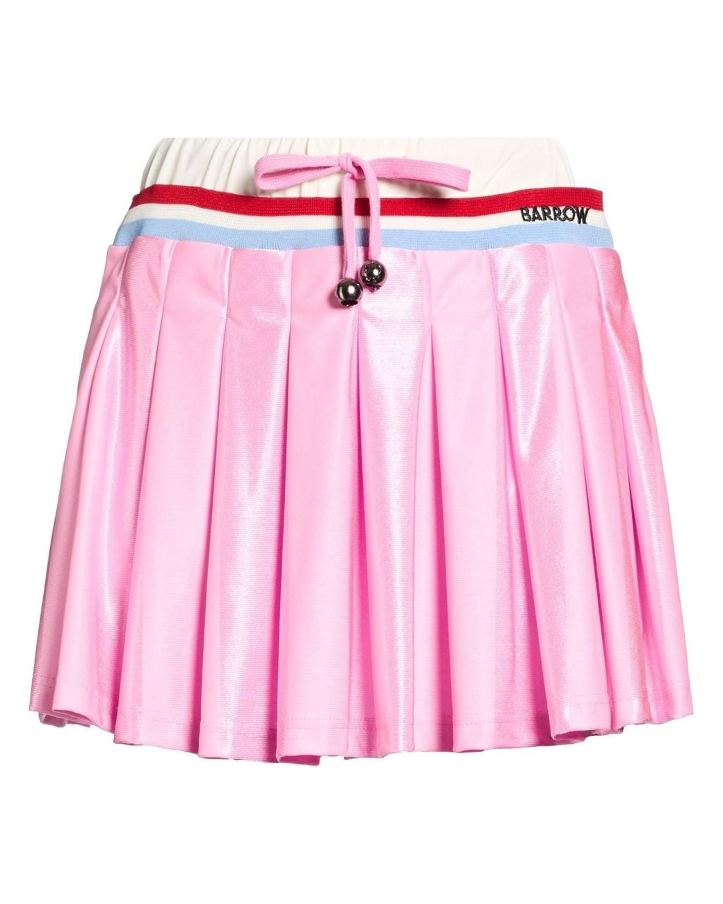 Pleated skirt, jersey, solid color, embroidered logo, knitted trims, high waisted, built-in shorts, drawstring fastening, without pockets, hand wash, do not bleach, do not tumble dry , Color: Pink , Size: XS