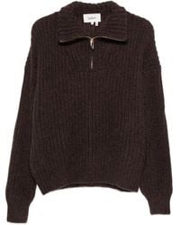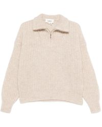 Go to FARFETCHFlamingo pink chunky ribbed knit brushed effect half front zip fastening high neck drop shoulder long sleeves straight hem Size: 2. Gender: Female. Material:Alpaca Wool/Polyamide/Elastane/Recycled Mohair. Color: pink
