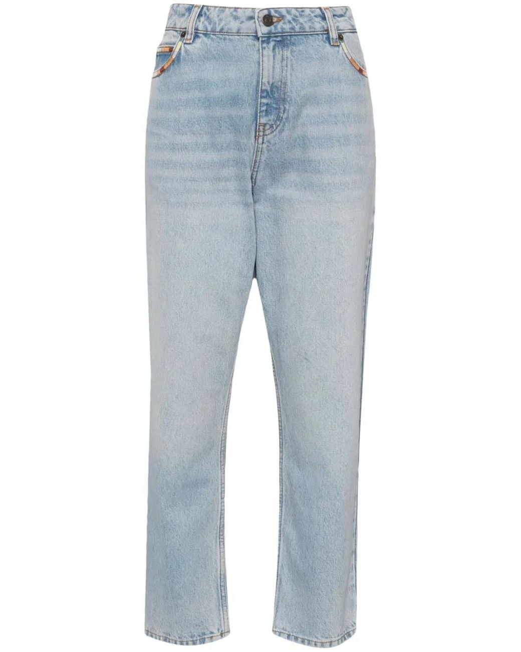 Light blue cotton denim concealed zip-fly and button fastening contrast stitching belt loops embroidered design classic five pockets logo patch to the rear cropped leg straight leg Size: 36. Gender: Female. Material:Cotton. Color: blue