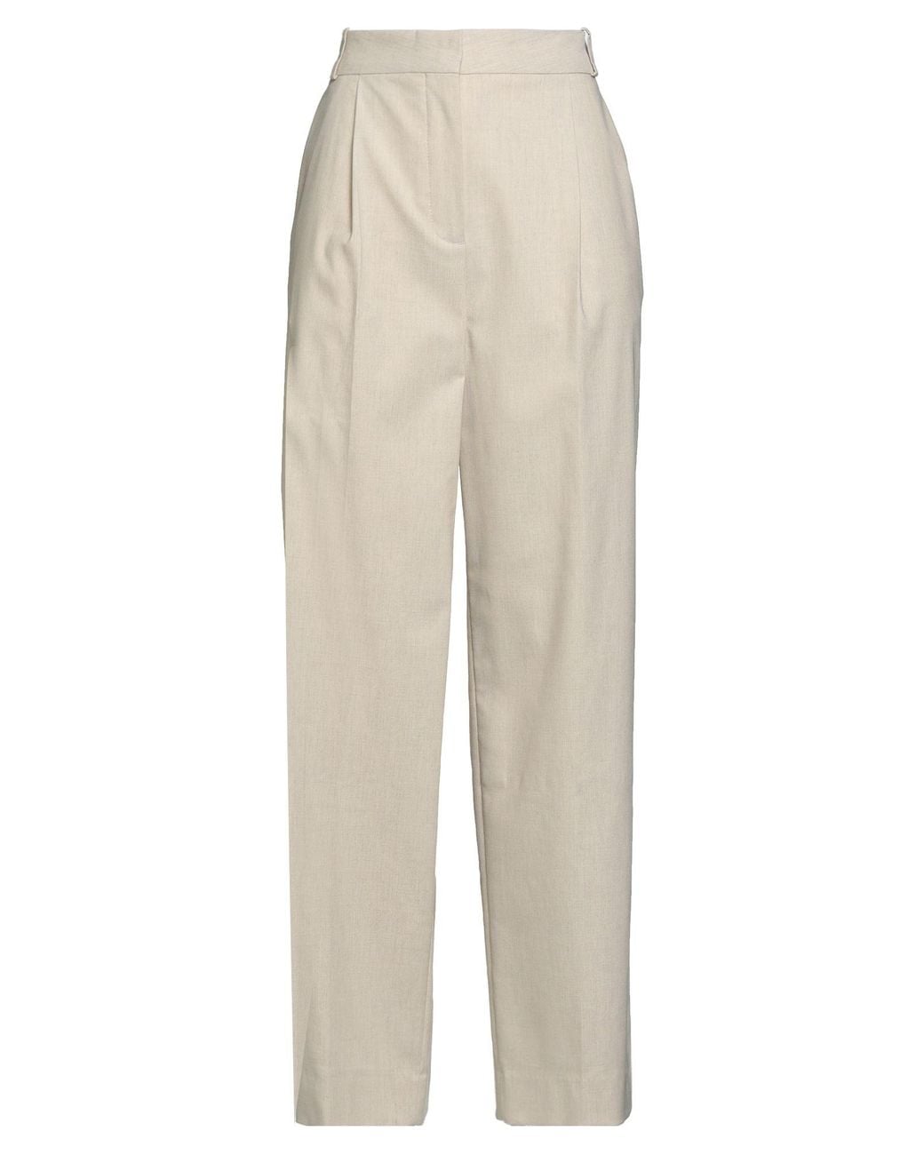 Wide-leg pants, twill, stretchy fabric, solid color, darts, high waisted, regular fit, zipper fastening, hook fastenings, slit pockets, decorative pockets, dry clean, do not bleach, do not tumble dry , Color: Beige , Size: 8