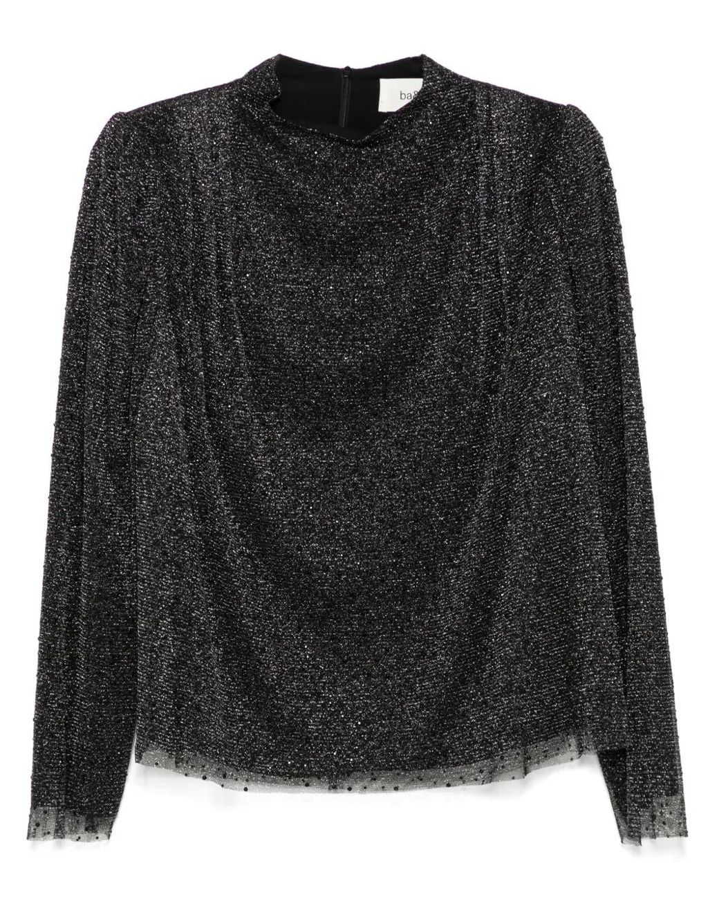 Carbone gray concealed rear hook and zip fastening bead embellishment glitter detailing lace trim round neck long sleeves Size: 1. Gender: Female. Material:Polyester film fiber/Viscose/Polyamide. Color: black