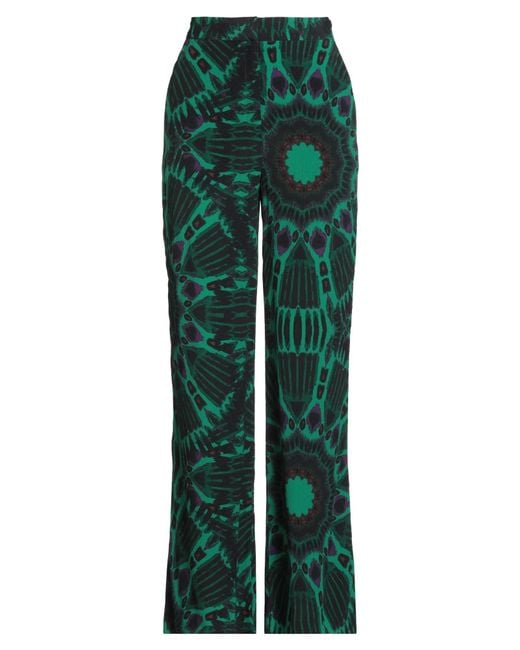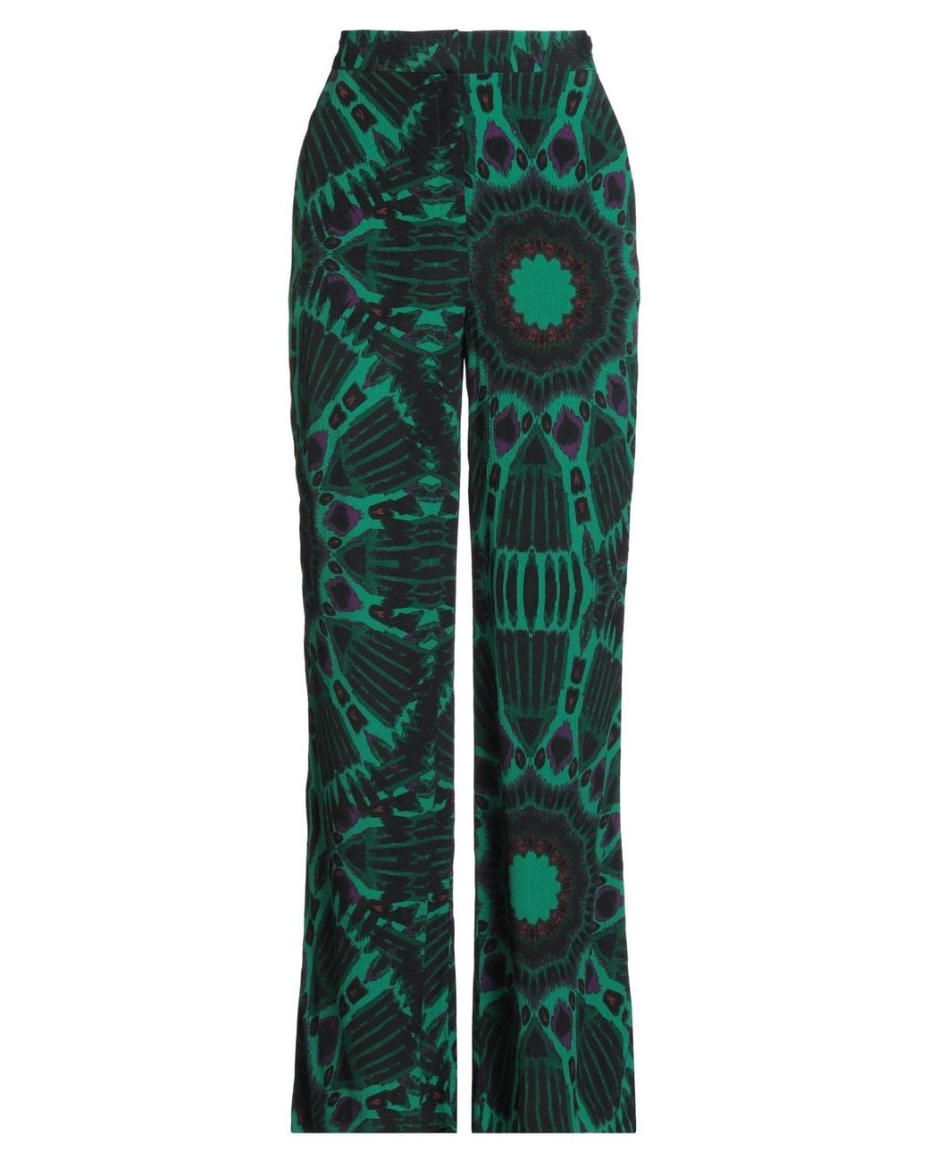 Wide-leg pants, crepe, crinkled, multicolor, no appliqués, mid rise, relaxed fit, unlined, zipper fastening, hook fastenings, slit pocket, welt pockets, hand wash or dry clean, do not bleach, do not tumble dry , Color: Emerald green , Size: 1