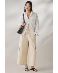 Go to Urban OutfittersBreezy BDG pant in a wide-leg, cropped silhouette. Designed in a standout printed cotton canvas with a mid-rise elasticated waistline, drawstring tie and carpenter pocket styling down the legs. Only at Urban Outfitters.