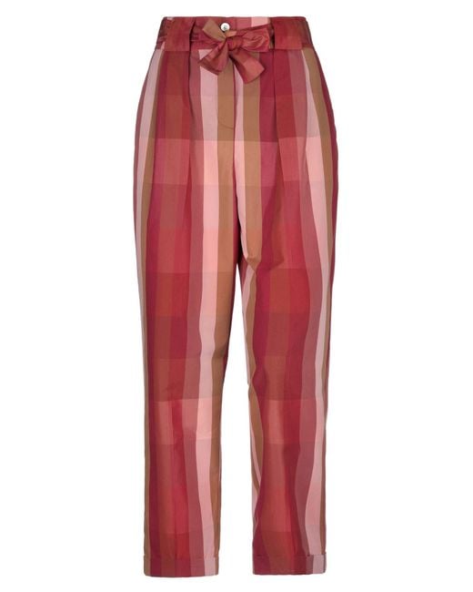 Plain weave, stripes, belt, high waisted, regular fit, tapered leg, button, zip, multipockets, small sized. 72% Cotton, 28% Silk.