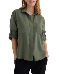 Go to NordstromA split back adds soft movement to this slightly oversized button-up shirt cut from a silky, buttery-soft fabric with an eye on sustainability. Color: green