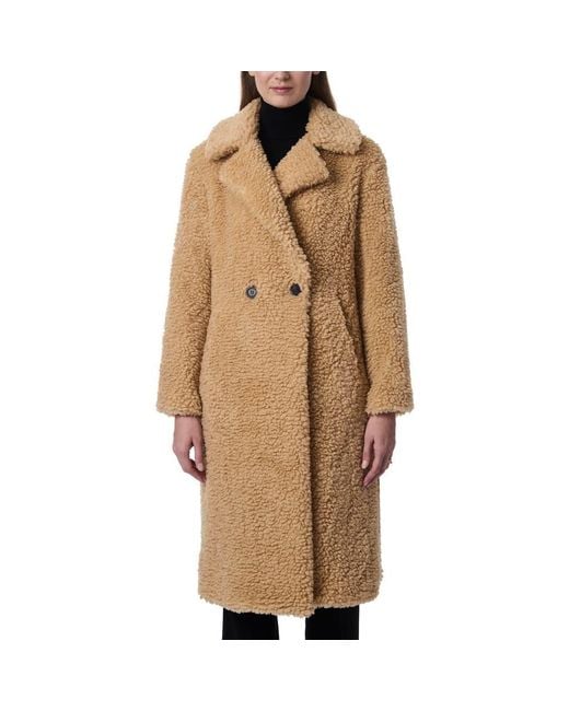 Women's Brown Faux Shearling Double Breasted Longline Coat
