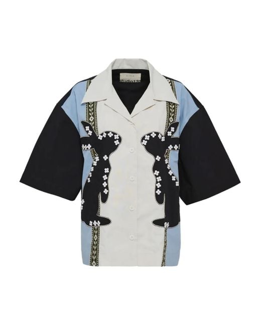 White rabbit motif short sleeves contrasting panels front button fastening Size: M. Gender: Female. Material:Cotton. Color: black