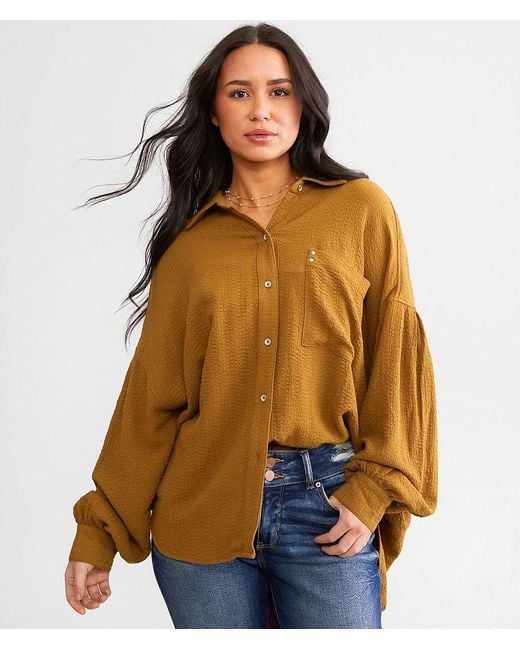 Textured chest pocket blouse Stud details Bust measures 50" on size small Body length 27 3/4" on size small.