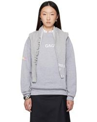 Go to SSENSECotton fleece sweatshirt. · Logo and text embroidered throughout · Rib-knit crewneck, hem, and cuffs · Logo and text printed at front and sleeves · Logo hardware at side seam Supplier color: Ecru