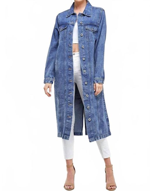 Classicly chic, this is the kind of trench coat that never goes out of style.Elevate your streetwear look with the Long Trench Coat Denim Jean Jacket by Blue Age, designed for a young contemporary style. This women's jacket, crafted from 100% cotton, features long sleeves and a textured denim finish in a classic blue hue. With a button closure and practical pockets, this oversized, non-stretch coat offers both style and utility. Perfect for a Thanksgiving holiday gathering, this unlined piece pr Color: blue