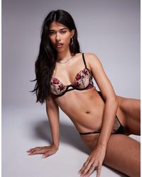 Bluebella Women's Black Exclusive Mia Semi Open Cup Sheer Mesh Bra With Crochet Trim