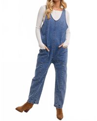 Go to ShopSimonThrow it on and go!Experience the effortless style of the Denim Sleeveless Jumpsuit by BluIvy, perfect for any casual occasion. Crafted entirely from cotton, this solid blue jumpsuit features a button closure for
