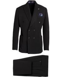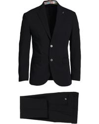 Go to YOOXDouble-breasted suit, twill, solid color, no appliqués, lapel collar, long sleeves, buttoned cuffs, fully lined, button fastenings, multipockets, dry clean, do not bleach, do not tumble dry , Color: Midnight blue , Size: 44