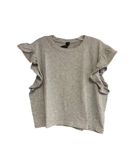 Look no further, you just found your perfect tee!Experience the effortless style of the Women's Flutter Sleeve Tee by bobi, crafted in Heather Gray. This cap sleeve tee combines 100% cotton fabric with a chic flutter design, offering a contemporary short length perfect for casual outings. Its solid pattern and crew neck make it a minimalist choice for your vacation closet. Enjoy the understated elegance without the fuss of complex closures or specific care instructions. Color: gray