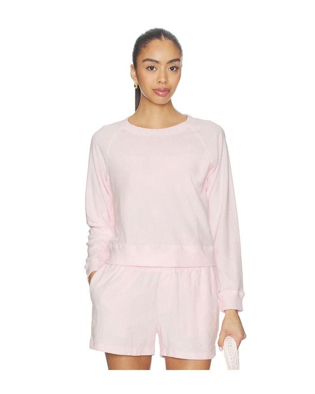Bobi Raglan Pullover in Pink. - size L (also in XS, S, M) Bobi Raglan Pullover in Pink. - size L (also in XS, S, M) 100% cotton. Made in China. Machine wash. Item not sold as set. Lightweight terry textile. BOBI-WK216. 57F-40824. Bobi is an LA-based line of dresses and tees made from some of the highest quality jersey at an affordable price. Color: pink