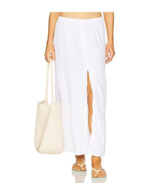 Bobi Tiered Button Front Maxi Skirt in White. - size L (also in S, M, XL) Bobi Tiered Button Front Maxi Skirt in White. - size L (also in S, M, XL) 100% cotton. Machine wash cold. Unlined. Elastic waistband with front button closure. Midweight gauze fabric. Item not sold as a set. Skirt measures approx 37 in length. BOBI-WQ84. 51F-77212. Bobi is an LA-based line of dresses and tees made from some of the highest quality jersey at an affordable price. Color: white