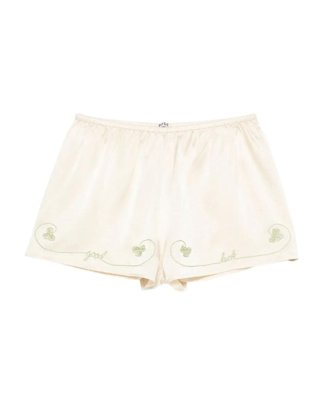 Beige silk embroidered clover motif elasticated waistband Size: L. Gender: Female. Material:Silk. Color: white