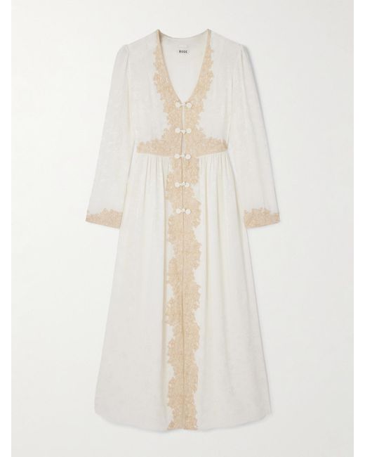 Women's White Trousseau Lace-Trimmed Silk-Jacquard Maxi Dress