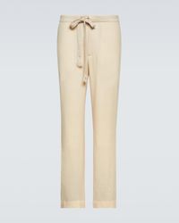 Go to FARFETCHSteel blue elasticated waistband with internal drawstring two diagonal pockets to the sides rear patch pocket ribbed cuffs Size: M. Gender: Male. Material:Cotton. Color: blue