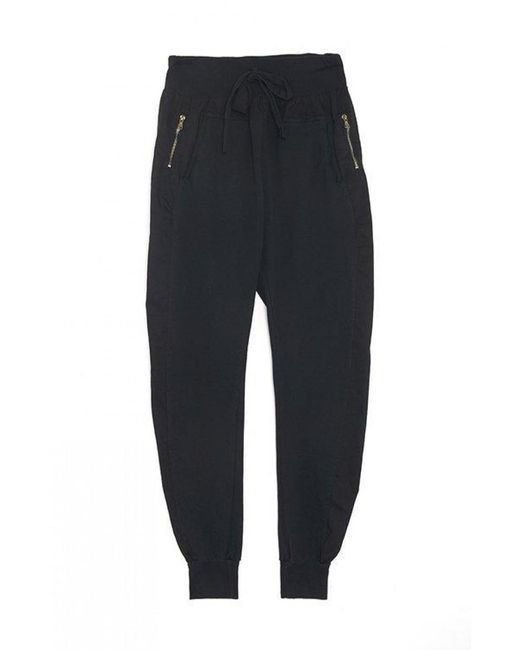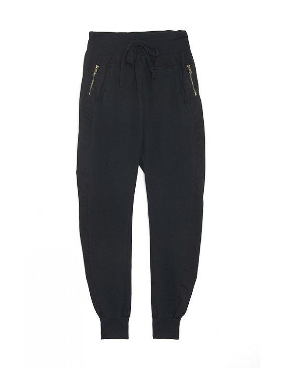 The ultimate sweatpants - everybody loves them! Black jersey with drawstring waist and elasticated cuff hems. Cotton vertical panel on the legs and below the waistband. Two side zipped pockets at the front. Comfortable, flattering and so versatile – you need a pair of these in your closet. 95% Cotton. 5% Elastane. Machine wash at 30°. Color: black
